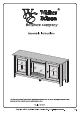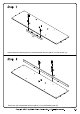 Right up the stand and slot in the back panel (8) to the side panels. Please pay attention on the corner direction of the back panel. Place the top panel (1) to the stand and secure it with the cam locks (C) and screw (X).