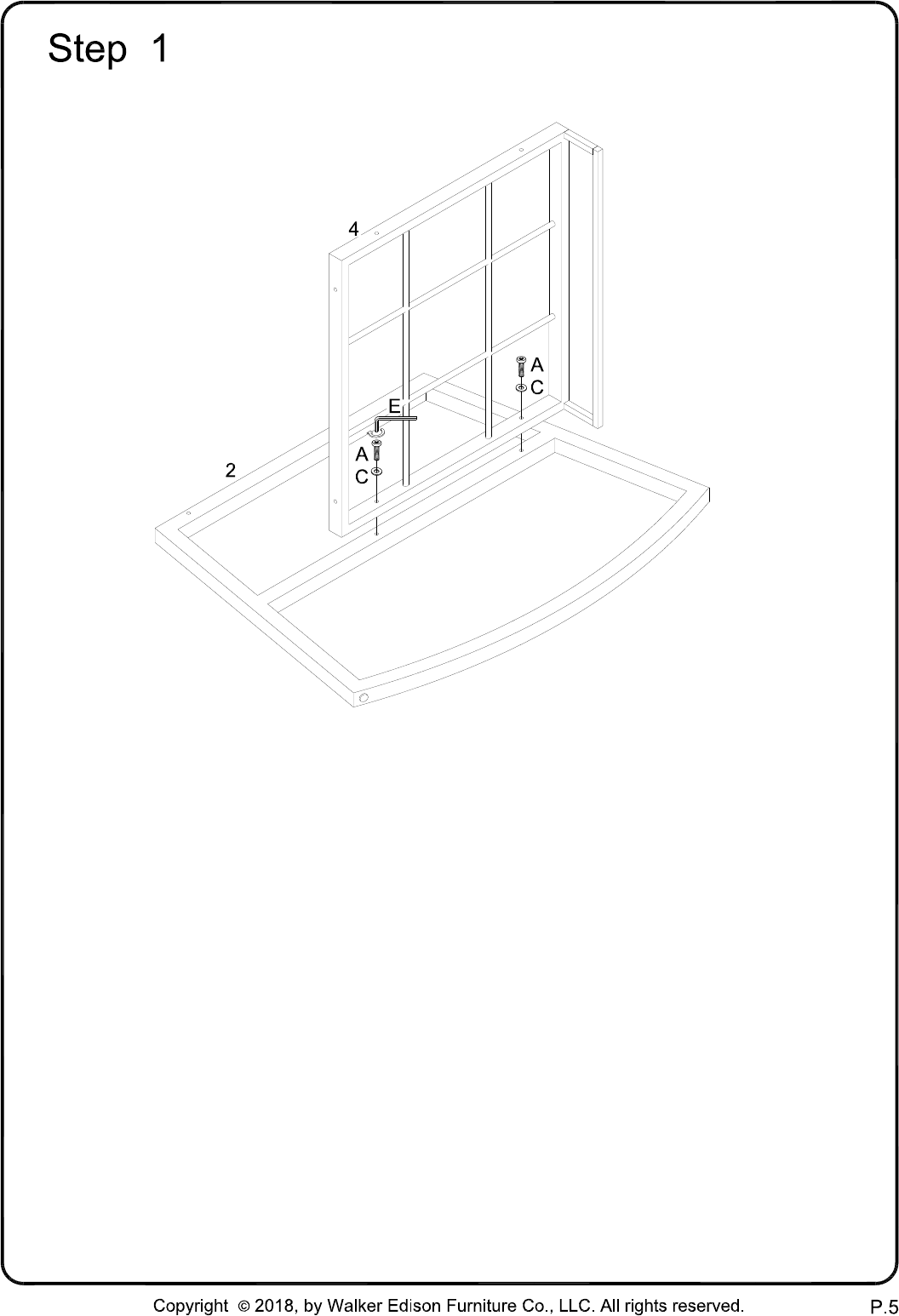 Attach part (4) to part (2) using bolt (A) and washer (C) with hex key (E).