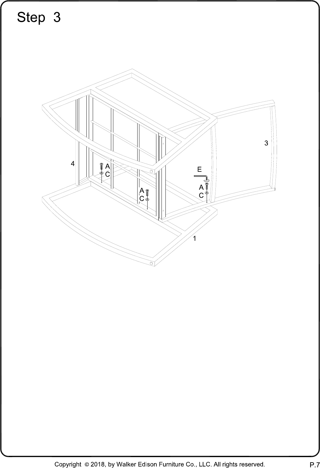 Attach part (3, 4) to part (1) using bolt (A) and washer (C) with hex key (E)