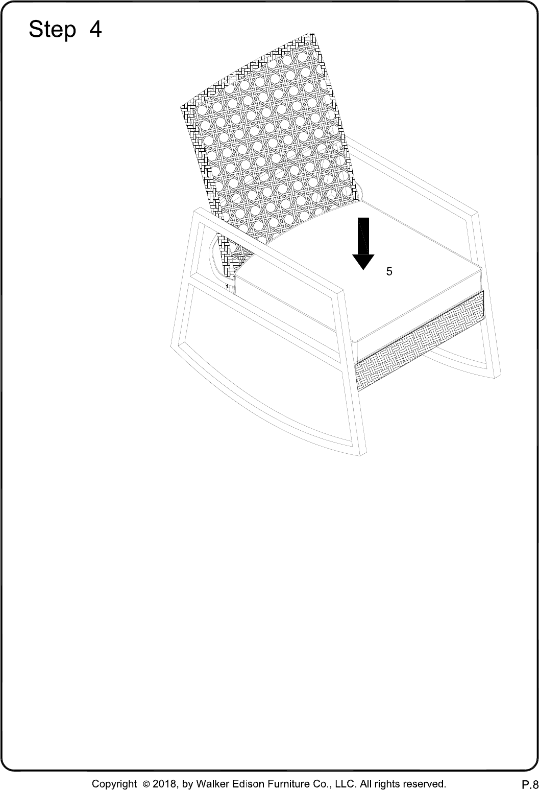 Place cushion (5) on the top of seat.