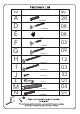 Step 13 F L 16 16 F L F F L 04 7x40mm L Hex Key 01 Attach guard rail (16) to ladder side rail (11,12) using bolts (F) and Hex Key (L). Step 14 " /8 63 J J J 05 3 " /8 21 2 05 J J J J 4,0x30 06 Connect guard rail support (05) to guard rail (16,18) and bed rail (19,21) using screw (J). Follow measurements shown in diagram. P.