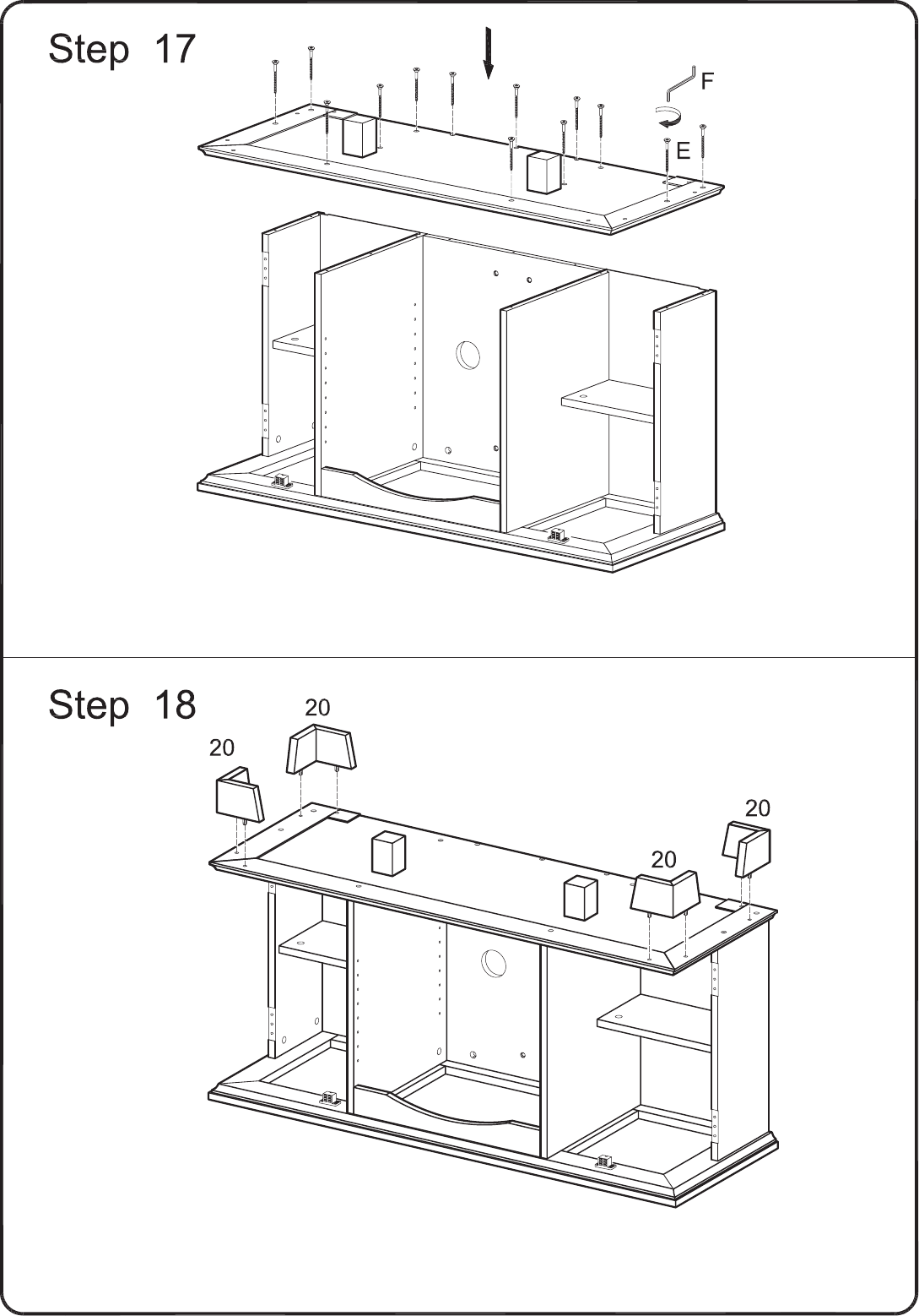 Attach stand base (2) to the stand assembly using bolts (E). T