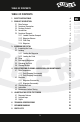 ÍNDICE ÍNDICE 1 INSTRUCCIONES DE SEGURIDAD 4 EN 2 DESCRIPCIÓN DEL PRODUCTO 2.1 Características 2.2 Funcionamiento 2.3 Contenido suministrado 2.4 Munición 2.5 Elementos del arma 2.5.1 Indicador de carga 2.5.2 Retén del cargador 2.5.3 Palanca de retenida 2.5.4 Cargador 6 6 6 6 7 8 9 9 10 10 DE 3 MANEJO 3.1 Inspección de la pistola 3.2 Cargar 3.2.1 Carga del cargador 3.2.2 Cargar la pistola 3.3 Disparar 3.4 Cambiar el cargador 3.5 Descargar 3.
