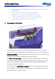 Mode d’emploi L’élévation du fût pour le tir debout peut être modifiée dans le sens longitudinal, en hauteur et en inclinaison. En outre, un pivotement autour de l'axe du canon est également possible. Pour démonter ou déplacer le bossage du fût dans le sens longitudinal, dévisser les vis à tête fraisée (a) afin de desserrer le rail de maintien. La hauteur du fût et l’angle d’inclinaison sont ajustés au moyen des vis de blocage (c).