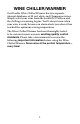 LOCATION OF CONTROLS AND INDICATORS 10 10 8 7 8 6 2 3 4 5 Professional Wine Chiller/Warmer Unit 1. On/Off 1 2. s 3. ▼ 4. Left Chilling/Warming Chamber Control 5. Right Chilling/Warming Chamber Control 6. Select 9 7. LCD Display – will display ENJOY at end of chilling/warming cycle 8. Ready Indicator Lights 9. Power Adapter 10.