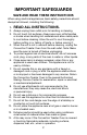 IMPORTANT SAFEGUARDS SAVE AND READ THESE INSTRUCTIONS When using electrical appliances, basic safety precautions should always be followed, including the following: 1. READ ALL INSTRUCTIONS. 2. A lways unplug from outlet prior to handling or cleaning. 3. Do not touch hot surfaces. Always use oven mitts/handles or knobs when handling hot materials and allow metal parts to cool before cleaning. Allow the unit to cool thoroughly before putting in or taking off parts, or before moving it. 4.