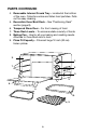 PARTS Continued 4. Removable Internal Crumb Tray – Located at the bottom of the oven. Collects crumbs and fallen food particles. Pulls out for easy cleaning. 5. Reversible Oven/Broil Rack – See “Positioning Rack” section (page 8). 6. Tempered Glass Door – For front viewing of food. 7. Three Rack Levels – To accommodate a variety of foods. 8. Baking Pan – Use for all your baking and roasting needs. Attaches to Oven/Broil rack to broil. 9.