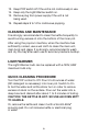 13. Keep POP switch off if the unit is not continuously in use. 14. Keep only the Light/Warmer switch on. 15. Remove plug from power supply if the unit is not being used. 16. Repeat steps 9 to 14 for continuous popping. Cleaning and Maintenance It is strongly recommended to clean the kettle frequently to avoid burning excess oil onto the bottom of the inner pot. After using the popcorn machine, when the machine has sufficiently cooled, use a wet cloth to clean the main unit, main body and glass.