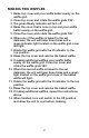making TWO WAFFLES 1. Raise top cover and pour waffle batter evenly on the waffle grid. 2. Close top cover and rotate the waffle grids 180°. 3. The green Ready indicator will turn off. 4. Raise the cover that is now on top and pour waffle batter evenly on the waffle grid. 5. Close the cover and rotate the waffle grids 180°. 6. When one of the waffles is baked to the set darkness, the unit will beep three times and a green indicator light located on the waffle grid cover will light. 7.