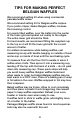TIPS FOR MAKING PERFECT BELGIAN WAFFLES We recommend setting #4 when using commercial pancake/waffle mixes. We recommend setting #4 for Belgian waffle recipes. If you prefer crisper, darker Belgian waffles, increase the browning control. For evenly filled waffles, pour the batter into the center of the lower grid and spread out evenly to the edges. The entire lower grid should be filled.