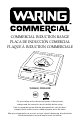 COMMERCIAL INDUCTION RANGE PLACA DE INDUCCIÓN COMERCIAL PLAQUE À INDUCTION COMMERCIALE WIH400, WIH400B For your safety and continued enjoyment of this product, always read the instruction book carefully before using. Para su seguridad y para disfrutar plenamente de este producto, siempre lea las instrucciones cuidadosamente antes de usarlo. Afin que cet appareil vous procure en toute sécurité beaucoup de satisfaction, lire attentivement le mode d’emploi avant de l’utiliser.