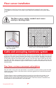 Installation with Plastic Cable Guides Define the area of the floor to be heated where there is no fixed furniture (such as a shower, toilet, cupboard or washbasin, etc.) and calculate the area to be heated. Hot Glue Thermostat 10 ft² ² 8 ft 16” 16” 2” 9 ft² 3” 3” 3 ft² 12 ft Example of cable installation on the floor Total area 96 sq. ft. minus 22 sq. ft. of fixed furniture space equal heated area 74 sq. ft.