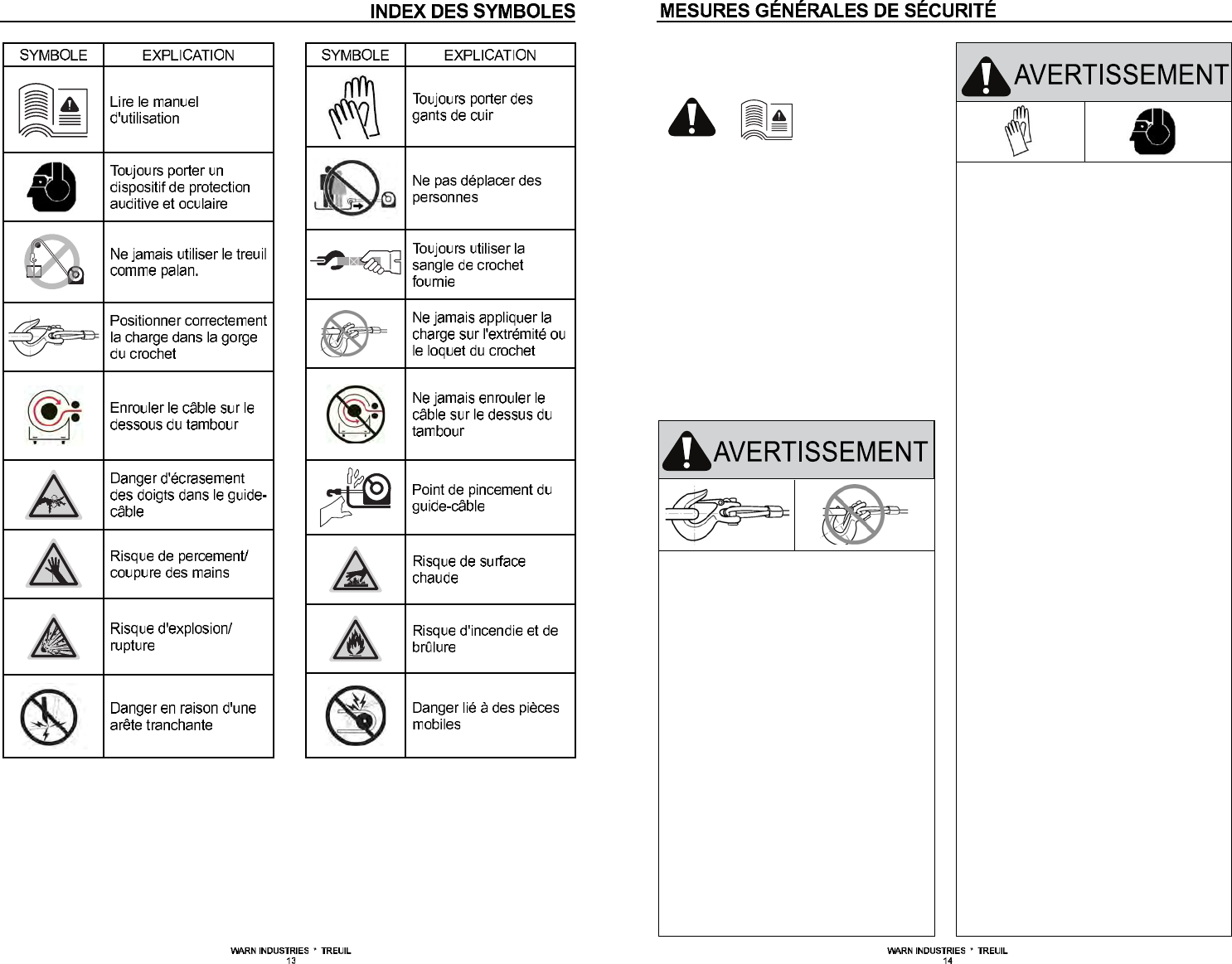 indications intitulées AVERTISSEMENT, ATTENTION,