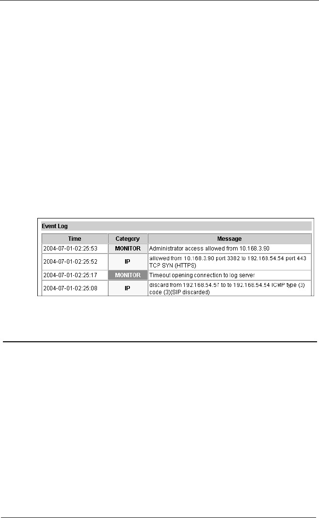 The Logging page appears with the Event Log at the bottom of the page.