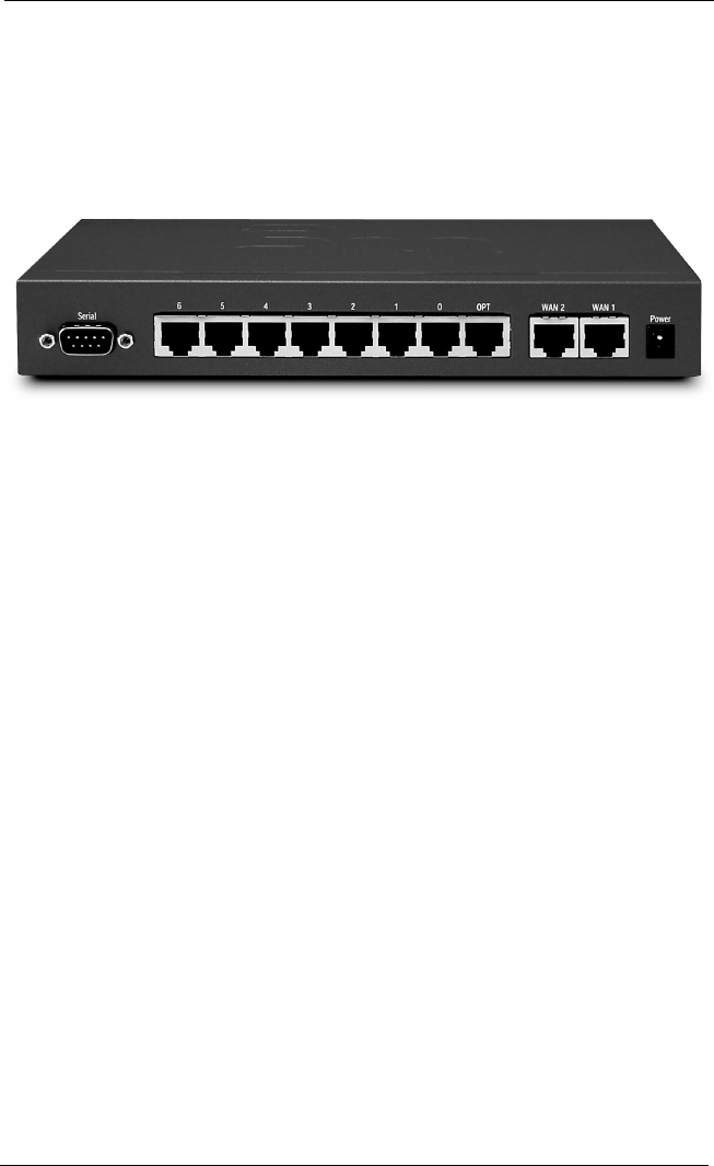The 7 Ethernet interfaces with the marks 0 through 6 are for the