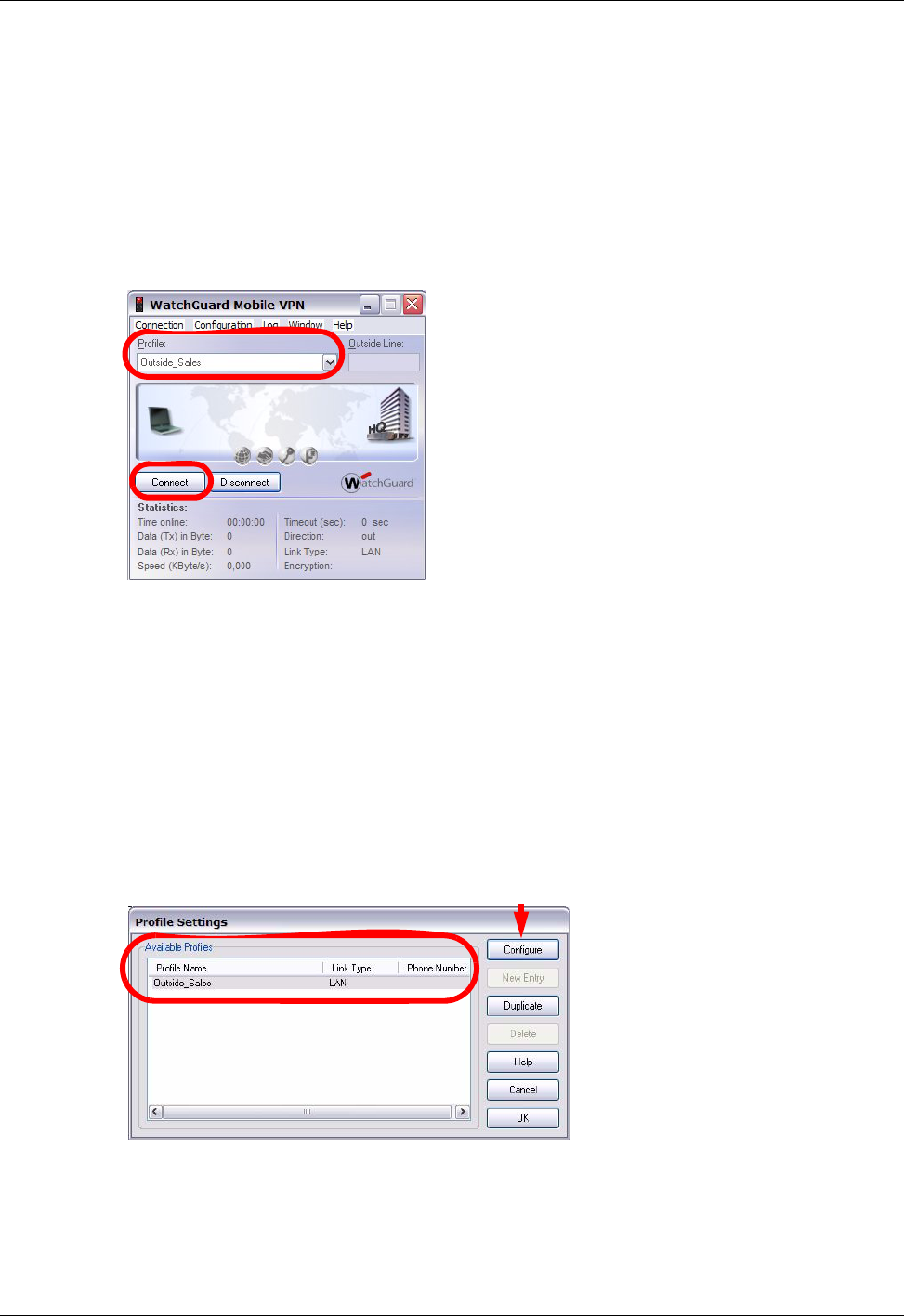 1 From the WatchGuard Mobile VPN Connection Monitor, select Configuration > Profile Settings.