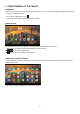 II - FUNCTIONNING OF THE TABLET Navigation Tablet has five home screens by default. The first time you turn on the tablet or after having factory data reset, you will see a navigation screen. * To see all you applications, touch . * You can put your favorite applications on Home screen. Home Screen A typical Home screen with wallpaper, status bar, and few applications at the bottom.