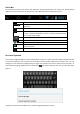 Status Bar At the bottom and top of the screen, the status bars mainly indicates Back icon, Home icon, Recent viewed applications icon, Current time, Wi-Fi status, 3G status, Bluetooth status and battery level, etc. Icon / Action On any functional screen, tap this icon to go back one screen or exit application. On any functional screen, tap this icon to go to Home screen Shows a list of thumbnail images of applications you’ve work with recently. To open an application, touch it.