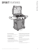 Product Features SPIRIT FE ATURES A B C D E F A Built-In Thermometer D Side Tables with Integrated Tool Hooks Being aware of the temperature inside of your grill allows you to adjust the heat when needed. Use the side tables to keep platters, seasonings, and tools within arm’s reach. Hang your essential grilling tools on the hooks for easy access and organization of your backyard workspace. The side table folds down to fit in smaller spaces (215).