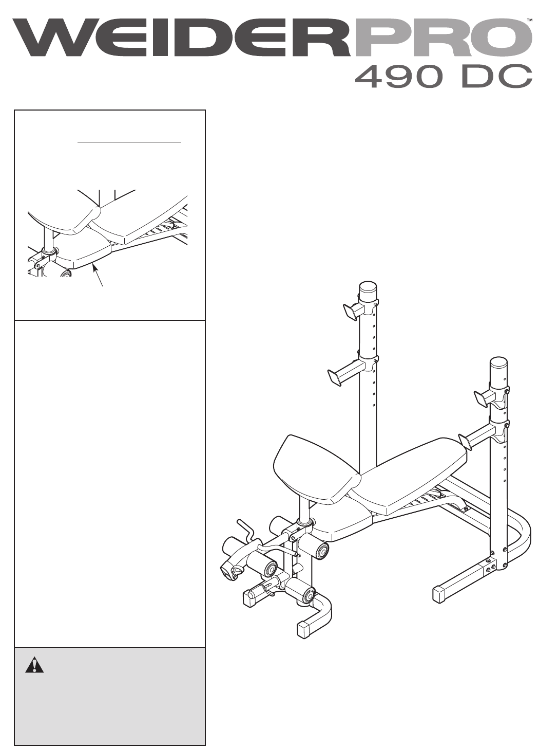 VOORDAT U BEGINT Dank u dat u hebt gekozen voor de veelzijdige WEIDER PRO™ 490 DC Olympic halterbank. De halterbank biedt een diversiteit aan oefeningstations die zijn ontworpen om elke belangrijke spiergroep van het lichaam te ontwikkelen. Of het nu uw bedoeling is om uw lichaam strakker te maken, voor aanzienlijke spiertoename en kracht, of om uw hart- en vaatsysteem te verbeteren, de halterbank helpt u bij het bereiken van de specifieke resultaten die u wenst.