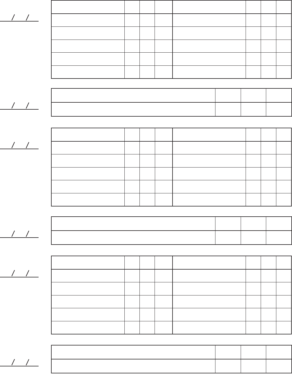 Maak kopieën van deze pagina en gebruik de kopieën om uw oefeningen te plannen en te noteren. Het plannen