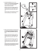 . Insert a Cord Trap (26) into the upper bracket on the Right Frame (6). Attach the upper pulley brackets on the 25-lb. Resistance Cord (36), the 35-lb. Resistance Cord (35), and the 45-lb. Resistance Cord (34) to the upper bracket on the Right Frame (6) with three M6 x 72mm Bolts (38) and three M6 Locknuts (37). 11 Repeat this step on the other side of the exercise rack. 12. Insert a Cord Trap (26) into the bracket on the Right Upright (4). Attach the lower pulley brackets on the 25-lb.