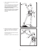 9. See the inset drawing. Identify a 45-lb. Resistance Cord (34), which is marked on each end with a “45.” Orient the 45-lb. Resistance Cord so that the center pulley bracket slopes downward as shown. 9 34 Center pulley bracket slopes downward Attach the center pulley bracket on the 45-lb. Resistance Cord (34) to the center hole in the indicated bracket on the Right Frame (6) with an M6 x 66mm Bolt (39) and an M6 Locknut (37). 7 Attach the other 45-lb.