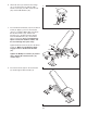USING THE WEIGHT BENCH WITH THE WEIGHT RACK The weight bench can be used with the weight rack in the position shown for some exercises. The weight rack can also be set in front of the weight bench for other exercises. HOW TO USE THE ADJUSTABLE-WEIGHT DUMBBELLS Weight Plates Each handle can hold two, four, six, or eight weight plates. Always attach the same number of weight plates to both sides of the handle. To select the desired number of weight plates, first set a dumbbell on a Tray (18) as shown.