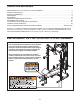 TABLEAU DE RÉSISTANCES DE POIDS Ce tableau indique la résistance approximative de poids pour chaque station. La colonne étiquetée POIDS référent à la quantité de poids, en livres, placé sur le porte-poids. La résistance indiquée pour le contracteur pectoral est pour chacun des bras. Remarque : la résistance actuelle à chaque station peut varier à cause des frictions entre les câbles les poulies et le porte-poids. POIDS (lbs.) CONTRACTEUR PECTORAL (lbs.) POULIE BASSE (lbs.) POULIE HAUTE (lbs.