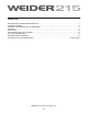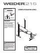 VOORDAT U BEGINT Fijn dat u voor de nieuwe WEIDER® 215 gewichtsbank gekozen hebt. De veelvoudige WEIDER® 215 is ontworpen om met uw eigen gewichten (niet inbegrepen) de belangrijkste spiergroepen van uw lichaam verder te ontwikkelen. De WEIDER® 215 kan U helpen uw figuur te verbeteren, uw spiermassa en -sterkte te vergroten of uw hart- en vaatstelsel beter te laten functioneren. Mocht u nog vragen hebben, neem dan contact op met de winkel waar u dit product hebt gekocht.