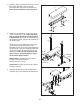 10. Befestigen Sie den rechten Stangenhaken (32) an die rechte Pfosten (1) mit einer M8 ZinkUnterlegscheibe (35) und einer M8 Zink-NylonVerschlussmutter (36). Ziehen Sie die Verschlussmutter nicht zu fest an; die Stangenhaken müssen sich leicht drehen können. 10 Befestigen Sie den linken Stangenhaken (33) an die linke Pfosten (1) mit einer M8 ZinkUnterlegscheibe (35) und einer M8 Zink-NylonVerschlussmutter (36).