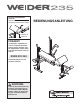 BEVOR SIE ANFANGEN Zunächst recht herzlichen Dank, dass Sie sich für die WEIDER® 235 Hantelbank entschieden haben. Die vielfältige Hantelbank WEIDER® 235 ist so konzipiert, dass Sie sie mit Ihren eigenen Hanteln (nicht beinhaltet) benutzen können, um jede Hauptmuskelgruppe in Ihrem Körper zu entwickeln.