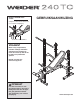 VOORDAT U BEGINT gebruiken. Raadpleeg de kaft van deze handleiding mocht u nog vragen hebben nadat u de handleiding hebt doorgelezen. Voordat u met ons contact opneemt, schrijf het productnummer en serienummer even op. De plaats waar u beide stickers kunt vinden wordt op de kaft van de handleiding aangegeven. Fijn dat u voor de nieuwe WEIDERЃ 240 TC gewichtsbank hebt gekozen. De gewichtsbank biedt reen reeks oefeningen ontworpen om de belangrijkste bovenlichaam spiergroepen te ontwikkelen.