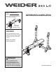 VOORDAT U BEGINT Dank u dat u heeft gekozen voor het veelzijdige WEIDER® 340 LC gewichtbank. De 340 LC gewichtbank biedt een diversiteit aan oefeningstations die zijn ontworpen om elke belangrijke spiergroep van het lichaam te ontwikkelen. Of het nu uw bedoeling is om uw lichaam strakker te maken, voor aanzienlijke spiertoename en kracht, of om uw hart- en vaatsysteem te verbeteren, de gewichtbank helpt u bij het bereiken van de specifieke resultaten die u wenst.