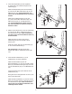 . Schuif een Gewichtssteun (2) op een Staander (1). Steek de haak van de Gewichtssteun in een bijstelgat in de Staander. Zorg ervoor dat de Gewichtssteun goed in een bijstelgat zit. 10 Haak 2 Herhaal deze stap aan de andere kant van de gewichtsbank. 1 Zorg ervoor dat de Gewichtsteunen (2) op dezelfde hoogte zitten. Bijstelgaten 11. Zorg dat alle onderdelen goed vast gedraaid zijn voordat u de gewichtsbank gebruikt.
