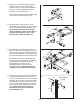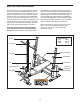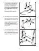5. Richten Sie den Rahmen (8) so aus, dass sich die Sechskantlöcher auf der Unterseite befinden. Geben Sie dann eine kleine Menge des mitgelieferten Schmiermittels an eine M10 x 70mm Schraube (55). Befestigen Sie den Rahmen mit einer M10 Mutter mit NylonKlemmteil (58) an die Querstange (5). Ziehen Sie die Muttern mit Nylon-Klemmteil nicht zu fest an; der Bankrahmen muss sich leicht drehen können. 5 56 8 Drehen Sie einen Beincurler-Knopf (56) fest in die Querstange (5) und den Rahmen (8).