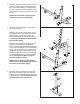 11. Bringen Sie nun die Gewichtsstange (19) mit der M8 x 58mm Schraube (46), zwei M8 Scheiben (50), den 12mm x 10mm Abstandshalter (61), und einer M8 Mutter mit NylonKlemmteil (49) am Beinhebel (4). 11 18 Drücken Sie die 25mm runde Außenkappe (62) auf das Ende der Gewichtsstange (19). 12. Schmieren Sie den Stift des M10 x 57mm Bolzen-Sets (55). Befestigen Sie den Beinhebel (18) mit dem Bolzen-Set am Vorderbein (12). Der Stift des Bolzen-Sets muss komplett durch die Klammer geführt werden.