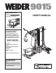 BEFORE YOU BEGIN Thank you for selecting the versatile WEIDER® 9015 weight system. The weight system offers a selection of weight stations designed to develop every major muscle group of the body. Whether your goal is to tone your body, build dramatic muscle size and strength, or improve your cardiovascular system, the weight system will help you to achieve the specific results you want. reading this manual, please call our Customer Service Department at 08457 089 009.