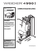 VOORDAT U BEGINT neemt. Raadpleeg de kaft van deze handleiding mocht u nog vragen hebben nadat u de handleiding hebt doorgelezen. Noteer het product modelnummer en het serienummer voordat u contact met ons opneemt, zodat wij u beter van dienst kunnen zijn. De plaats waar u de sticker van het modelnummer en het serienummer kunt vinden wordt op de kaft van de handleiding aangegeven. Dank u dat u hebt gekozen voor het nieuwe WEIDER® 4990 I gewichtsysteem.
