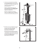 20. Wickeln Sie das hohe Kabel (55) unter die 90mm Rolle (48). Befestigen Sie die Rolle und zwei Halbschutzstücke (43) am oberen Loch in der verstellbaren U-Klammer (45) mit einem M10 x 45mm Bolzen (81) und einer M10 Kontermutter (56). Sorgen Sie dafür, dass sich die Halbschutzstücke auf der Außenseite der verstellbaren U-Klammer befinden. 20 55 56 43 48 43 81 45 21. Leiten Sie das hohe Kabel (55) nach oben durch den oberen Rahmen (4) und über eine 90mm Dünne Rolle (47).