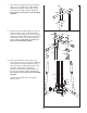 RÉGLAGES Les étapes ci-dessous expliquent comment ajuster le système de musculation. Référez-vous à l’affiche d’entraînement inclus pour observer la position correcte de chaque exercice. Assurez-vous que toutes les pièces sont correctement serrées à chaque fois que vous utilisez le système de musculation. Remplacez immédiatement les pièces usées. Le système de musculation peut être nettoyé avec un chiffon humide et un détergent doux, non-abrasif. N’utilisez pas de dissolvants.