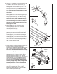 2. Befestigen Sie ein Rad (31) an die Außenseite der Basis (1) mit einem M10 x 108mm Bolzen (81), drei M10 Unterlegscheiben (75) und einer M10 Nylon-Verschlussmutter (76). Ziehen Sie die Nylon-Verschlussmuttern nicht zu fest an; das Rad muss sich leicht drehen können. 2 76 75 75 Befestigen Sie das andere Rad (nicht gezeigt) auf die gleiche Weise. 81 31 1 3. Drücken Sie eine 38mm x 64mm Innenkappe (41) in jedes Ende des Querrohrs (11).