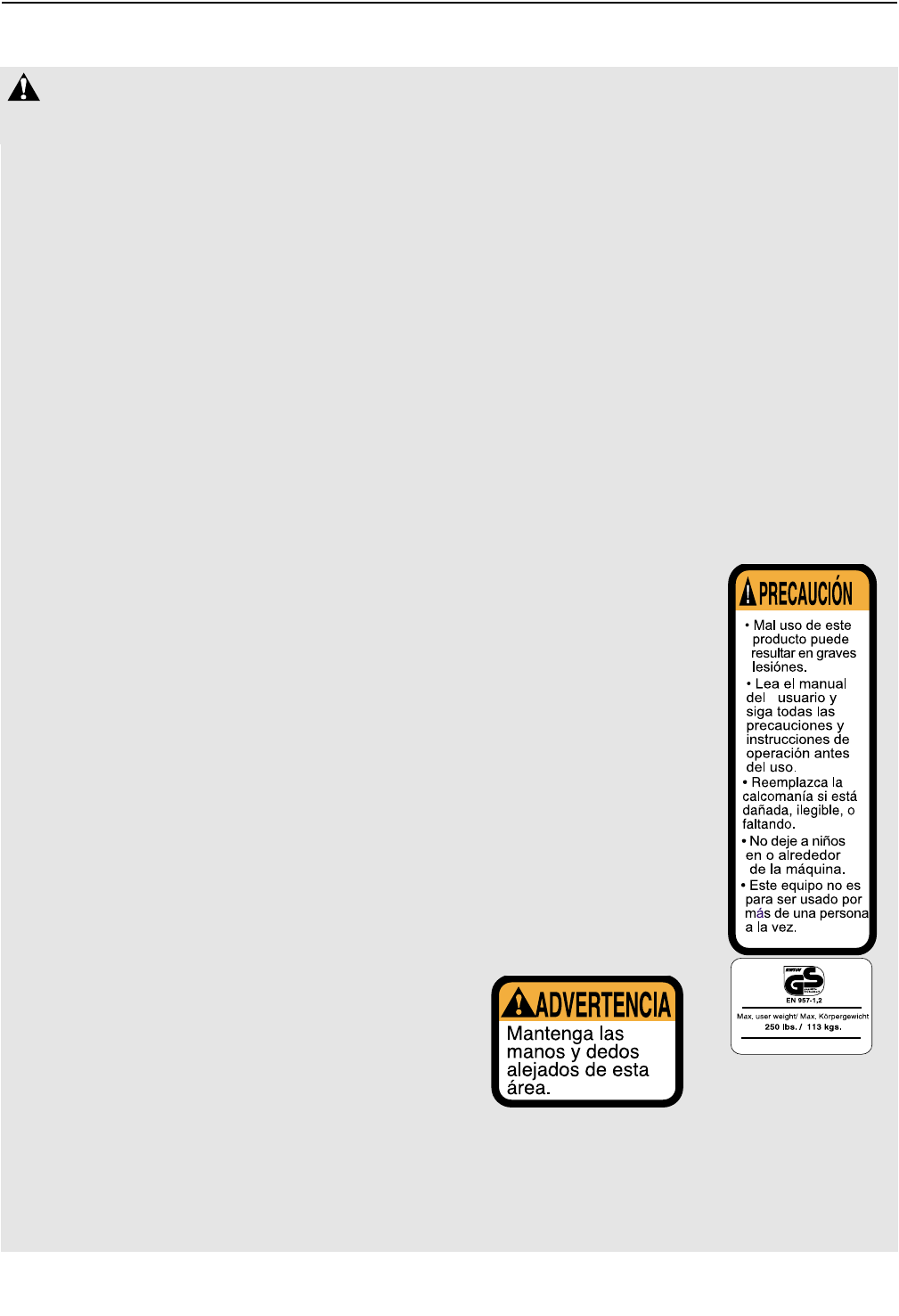 AVISO: Para reducir el riesgo de lesiones serias, antes de usar el sistema de entrenamien-