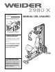 ANTES DE COMENZAR Gracias por seleccionar el versátil sistema de entrenamiento WEIDER® 2980 X. El sistema de entrenamiento 2980 X está diseñado para desarrollar los principales grupos de músculos. Si su meta es tener una figura bien formada, desarrollar y fortalecer el tamaño de sus músculos dramáticamente, o mejorar su sistema cardiovascular, el sistema de entrenamiento le ayudará a alcanzar los resultados específicos que usted desea. después de leer este manual, por favor vea la portada de este manual.