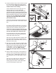 12. Attach a Plastic Foot (53) to the Backrest Frame (15) with an M4 x 16mm Screw (62). 12 Attach the two Guard Plates (17) to the inside of the Backrest Frame (15) with four M4 x 16mm Screws (62). 15 17 13. Attach the Backrest (14) to the Backrest Frame (15) with four 1/4" x 45mm Screws (58). 62 13 53 62 62 17 14 15 58 14. Insert the rod on the Backrest Frame (15) into the slot in the Seat Carriage (12).