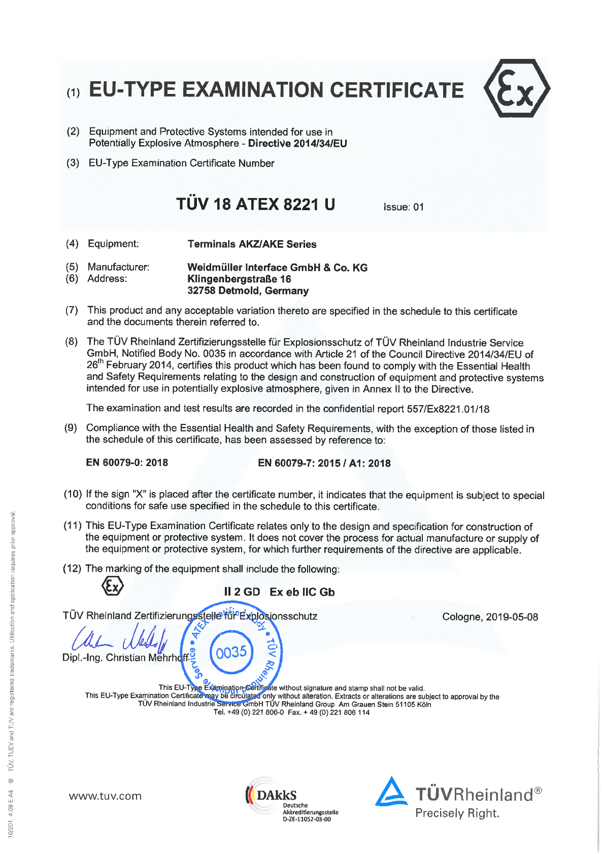 Approval/Certificate/Document of Conformity
