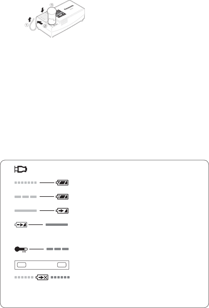 始闪烁。充电将在电池组温度回升后开始(仅限锂离子电池)