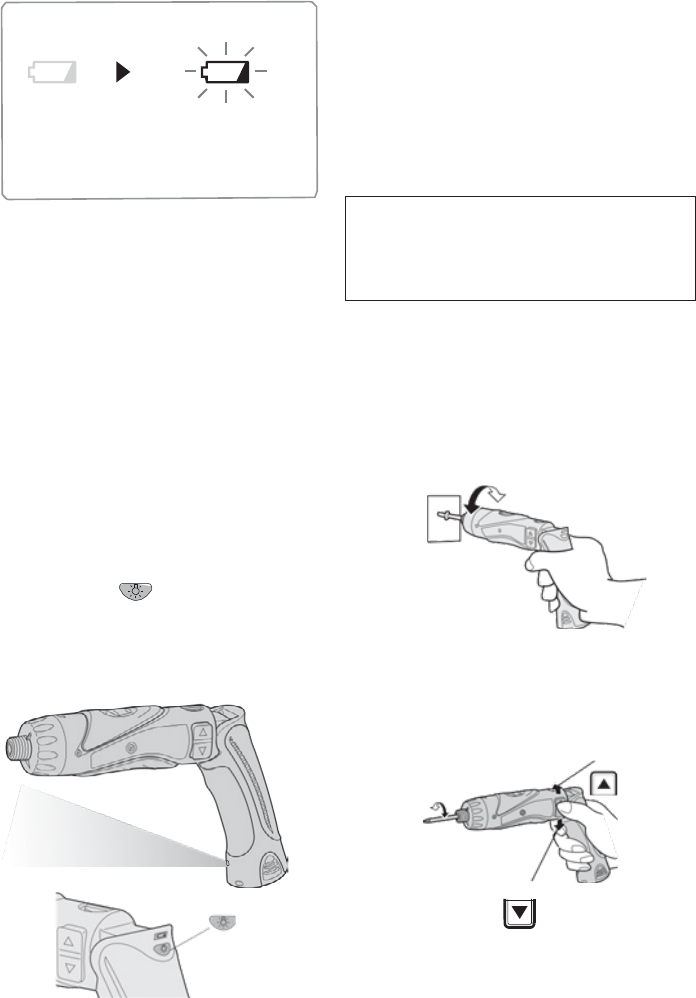 • Wenn die Akkuladungs Warnlampe blinkt,
