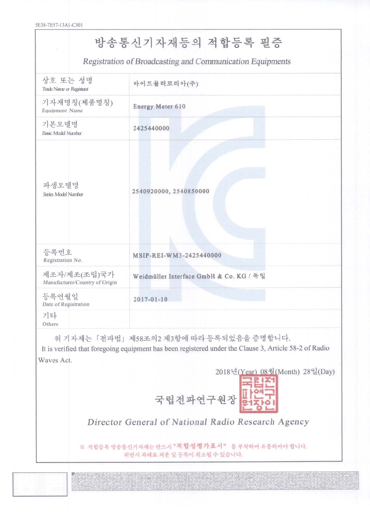 Approval/Certificate/Document of Conformity