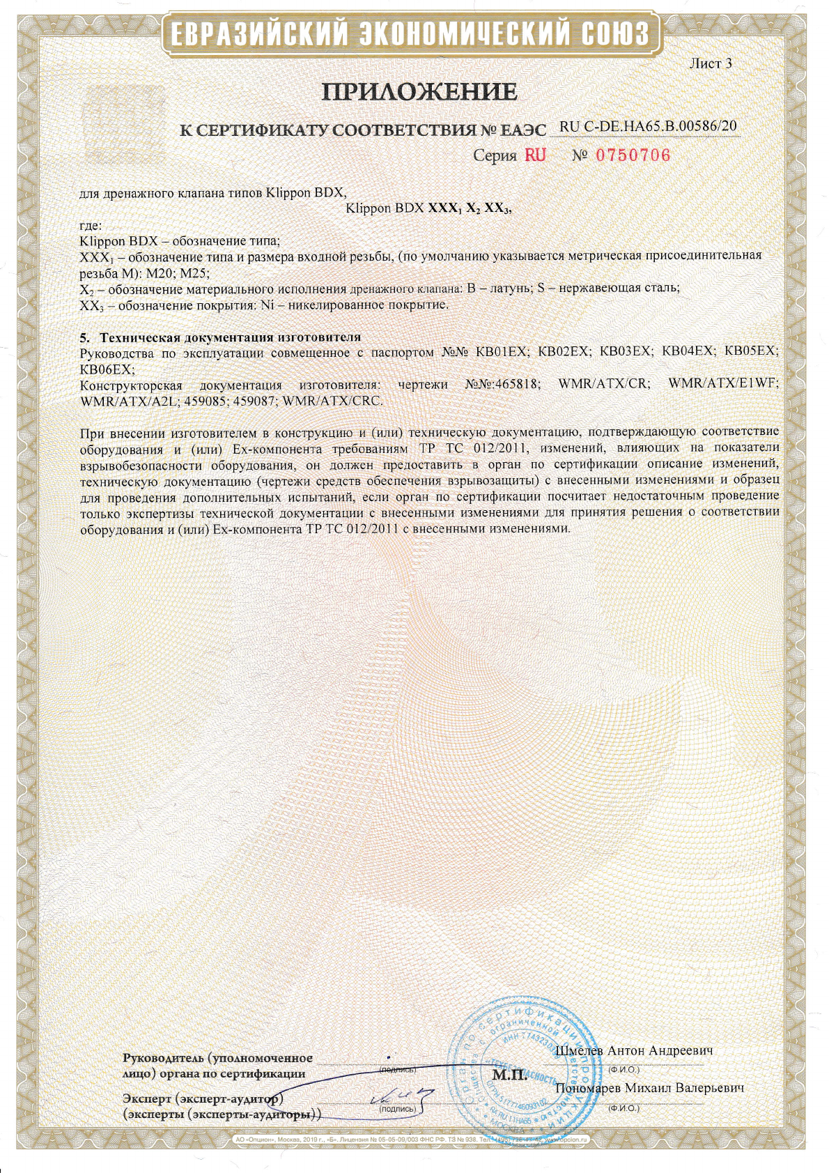 Approval/Certificate/Document of Conformity